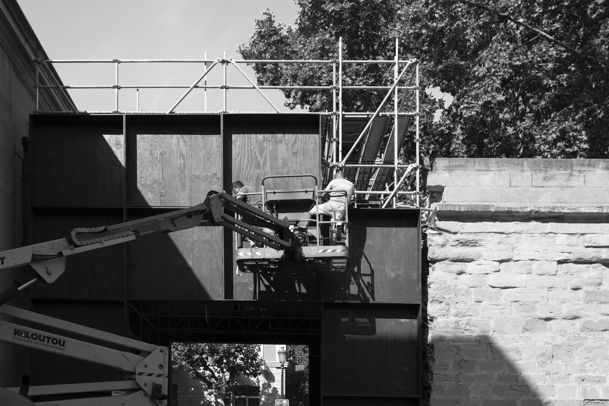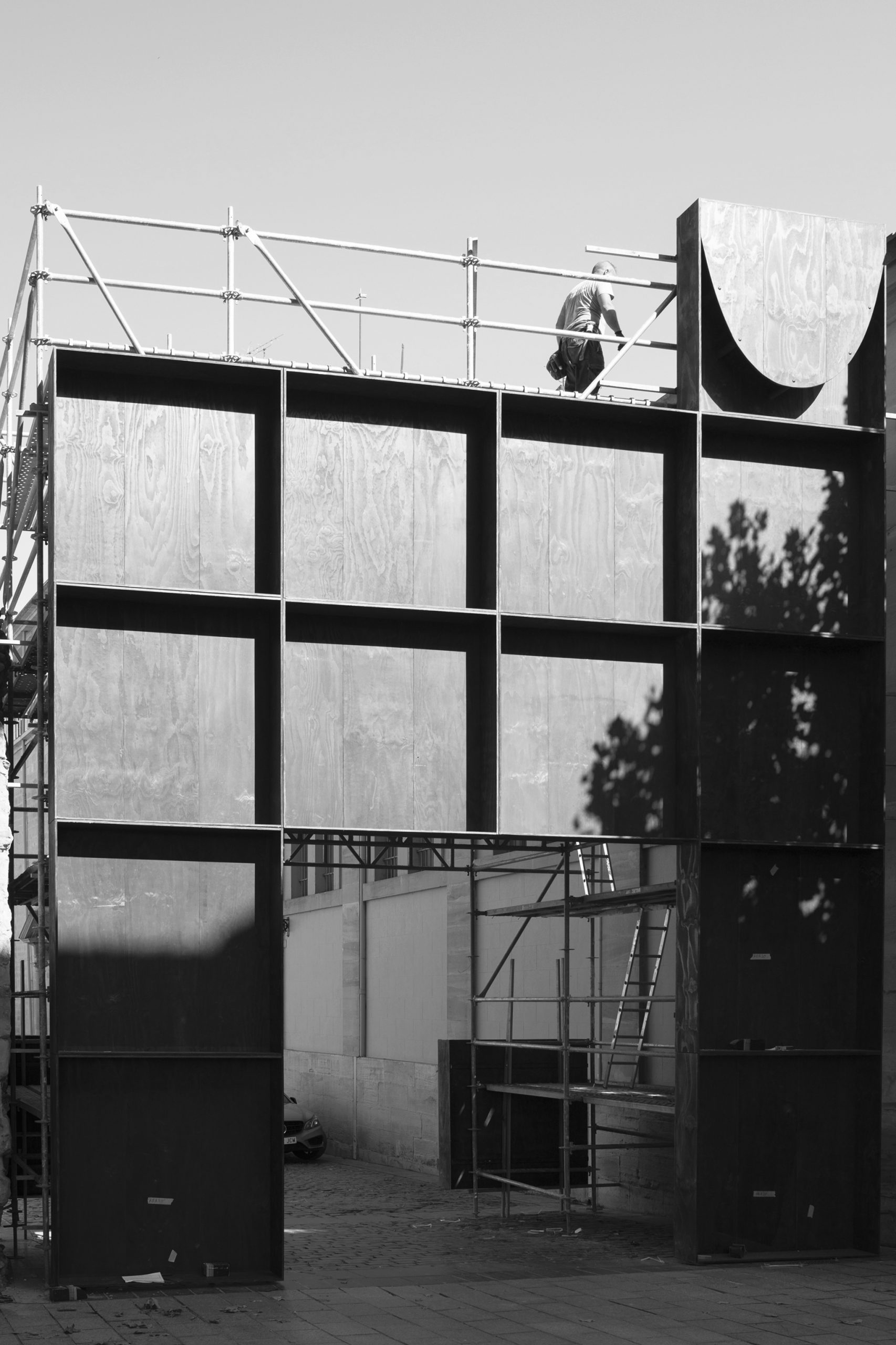 The project EXTRA-ORDINARY GATE, realized for the 8th edition of the Concéntrico festival in Logroño (Spain), is located in one of the most historically significant sites of the Spanish city and more precisely at the point where the Calle Marqués de San Nicolás, the way of the Camino de Santiago de Compostela, meets the defensive walls that used to surround and protect the city. Here a significant breach interrupts the continuity of the walls to ensure the passage of cars and pedestrians.